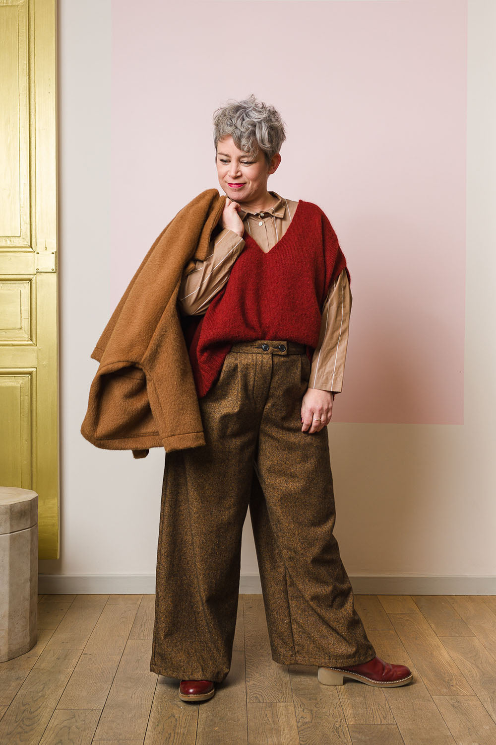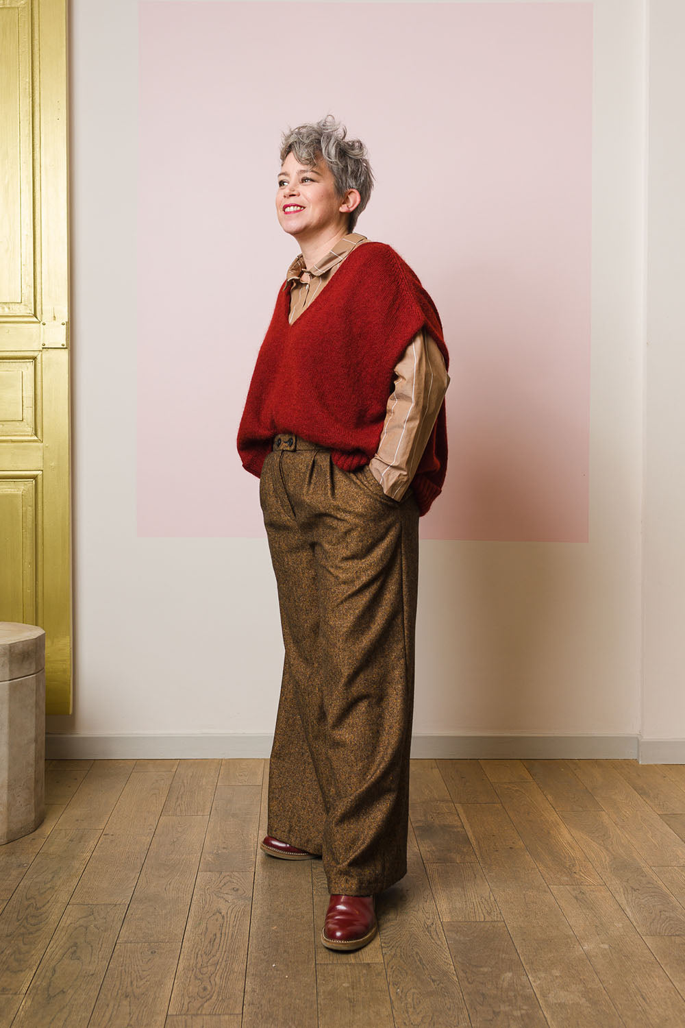 Bandit, the sweater that's all about us. V-shaped front, small V-shaped back, armholes that fit all shapes, whether fitted or oversized. And the shoulder is covered all the way to the middle of the arm. The proportions are ideal.