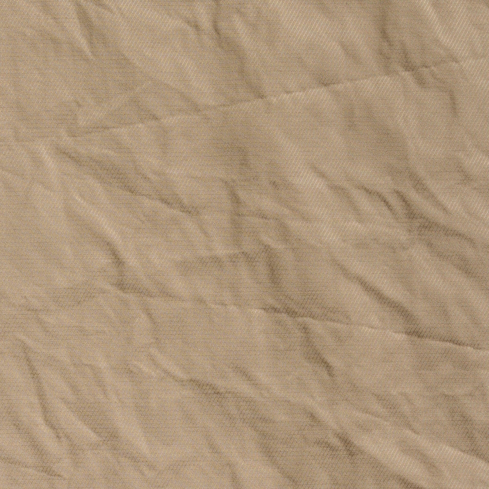 Le tissu froissé est un coton et +, plutôt souple et léger. Le ton de beige est très thé au lait et le marine est foncé comme un ciel de nuit. Beaucoup de douceur et du craquant.
